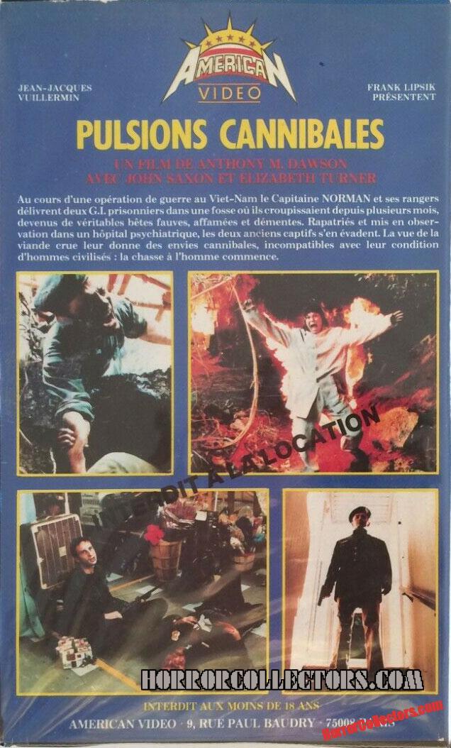 Cannibal Apocalypse French release Pulsions Cannibales American Video by Spookydaz | Sep 1, 2020 | Uncategorized Cannibal Apocalypse French release Pulsions Cannibales American Video Country: France Format : VHS Category: Movie TV System : SECAM Tags: Cannibal Apocalypse Click for more American Video Click for more Cannibal Apocalypse Log in to add this item to your collection. Pulsions Cannibales American Video Cannibal Apocalypse French release Related Gallery Click to search eBay for more Cannibal Apocalypse French release Pulsions Cannibales American Video Click to search eBay for more Cannibal Apocalypse Movie Items for sale Click to search eBay for more Cannibal Apocalypse More Horror Collectors Items you may like A Nightmare on Elm Street Freddy Fright Squirter EnterTech Krueger toy water blaster Other The Erotic Rites Of Frankenstein Go Video Pre Cert VHS United Kingdom Movie Day Of The Dead Vintage 1985 Movie T-Shirt United States Clothing Motel Hell UK Warner Home Video Pre Cert VHS United Kingdom Movie