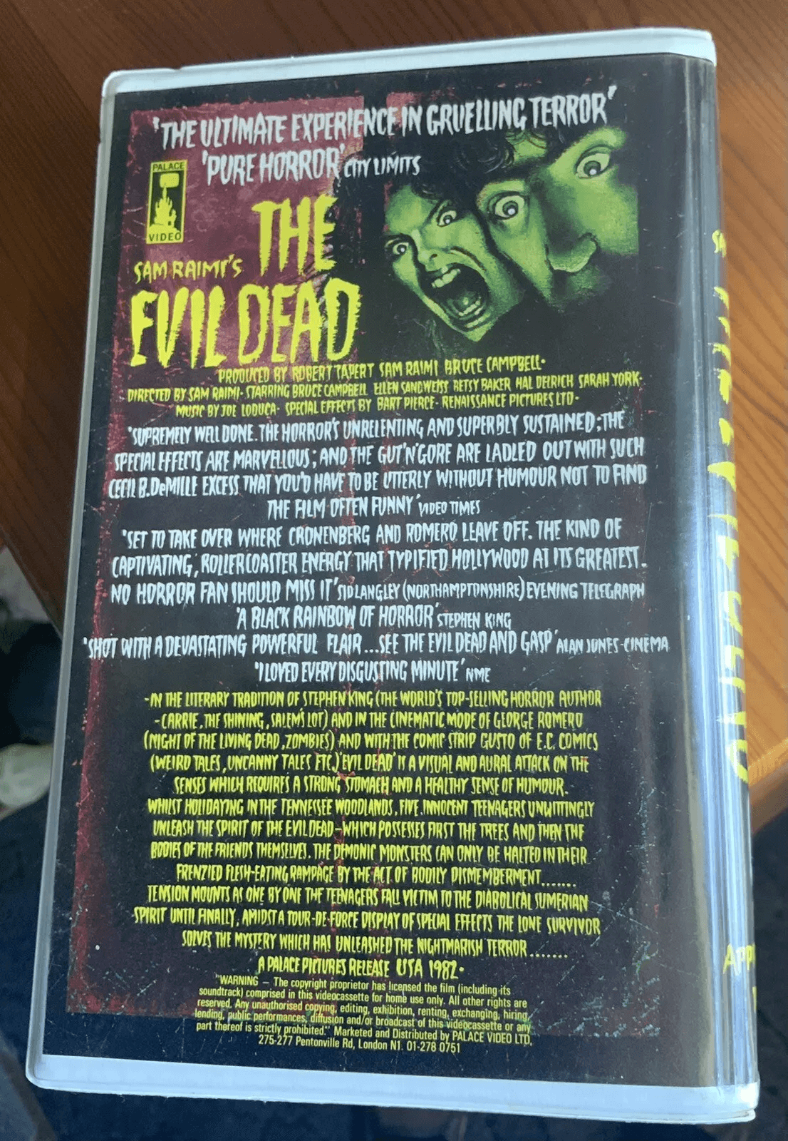 More information on a previously sold The Evil Dead VHS Original 1982 Palace Video item 204917142651 item